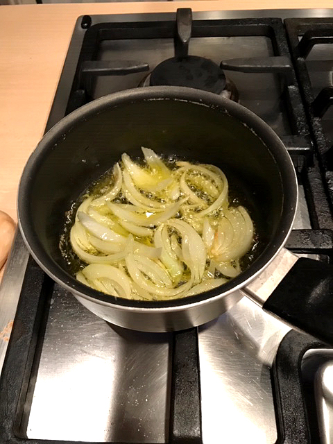 Ingredienti: 1/2 cipolla, 20 prugne secche, 2 cucchiai di aceto di vino bianco, 3 cucchiai di olio EVO, sale, zucchero